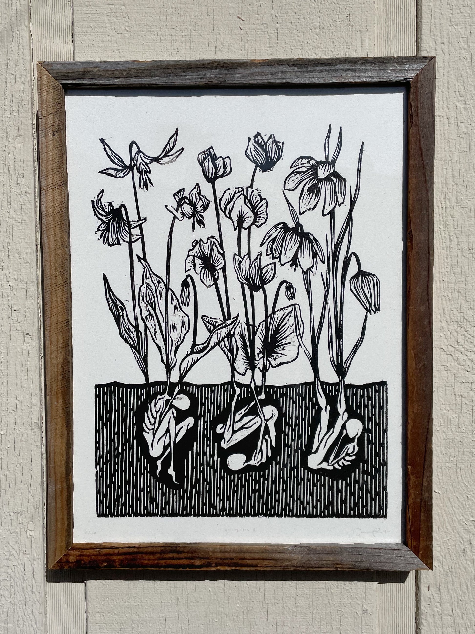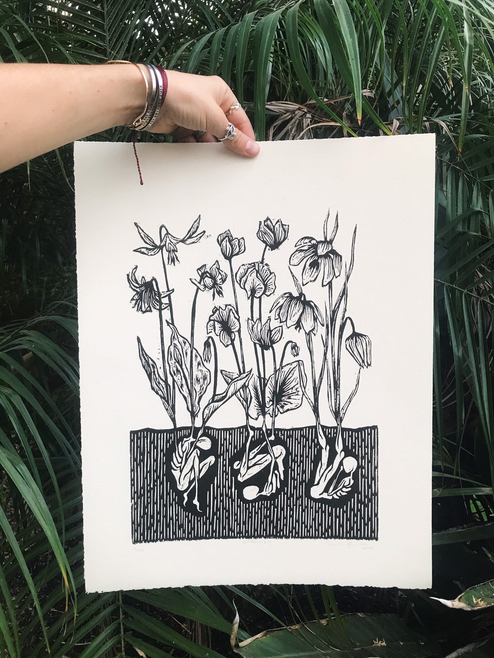 -carved into Birch plywood and handprinted onto BFK cotton rag paper